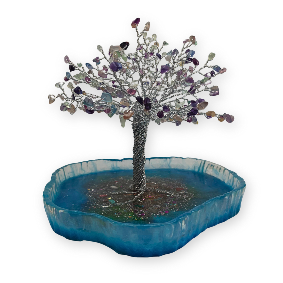 Levensboom; ook wel Tree of life en de Heilige Boom genoemd. De levensboom staat symbool voor kracht, groei, schoonheid en overvloed. De boom wordt vaak gezien als het leven zelf; gevoed door de aarde, groeiend en het doorstaan van elke uitdaging. De onderkant van de levensboom is een orgonite. De boom zelf is gemaakt van edelstenen en aluminiumdraad. De levensbomen zijn handgemaakt en uniek.