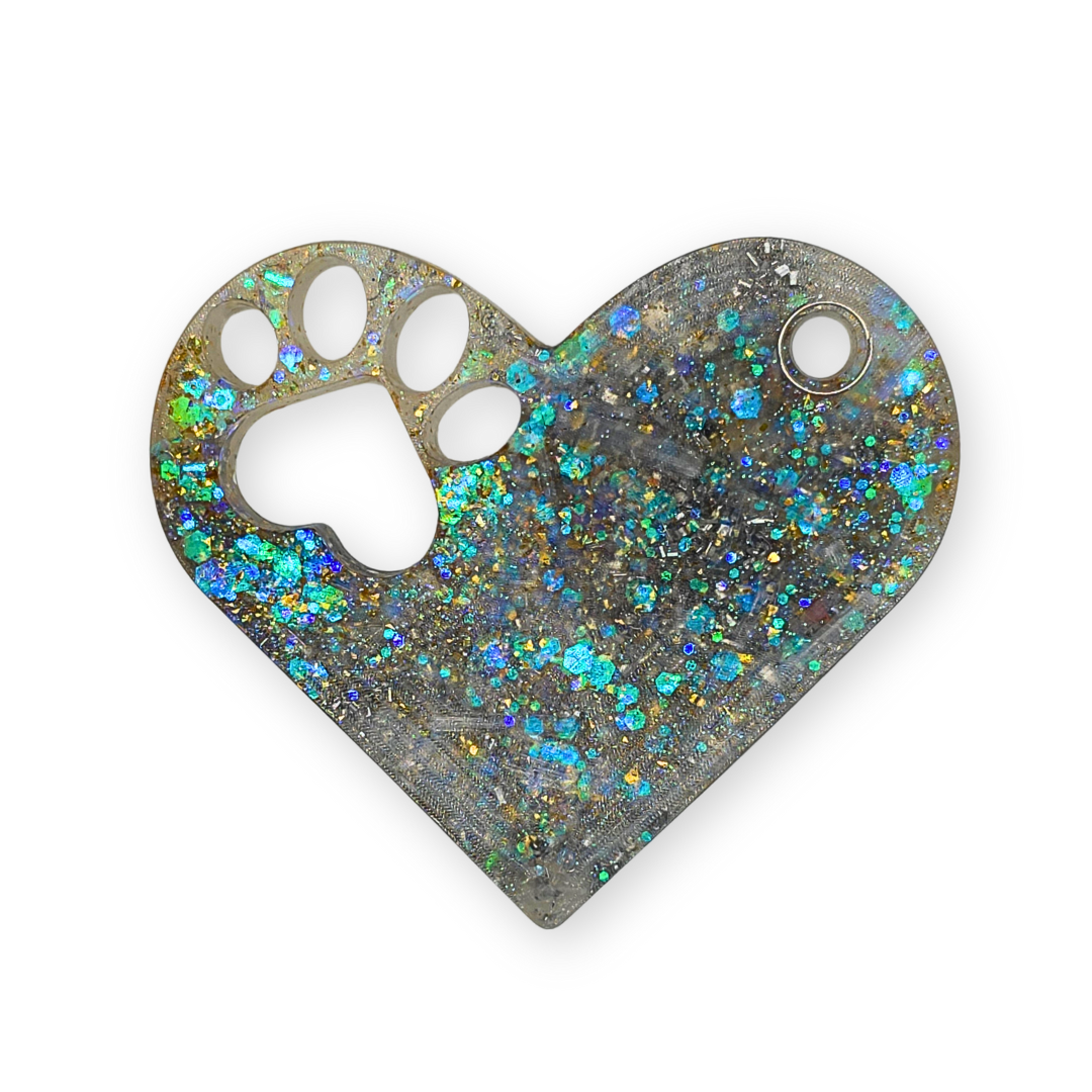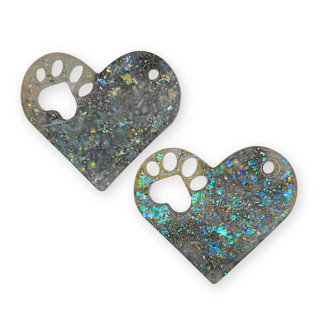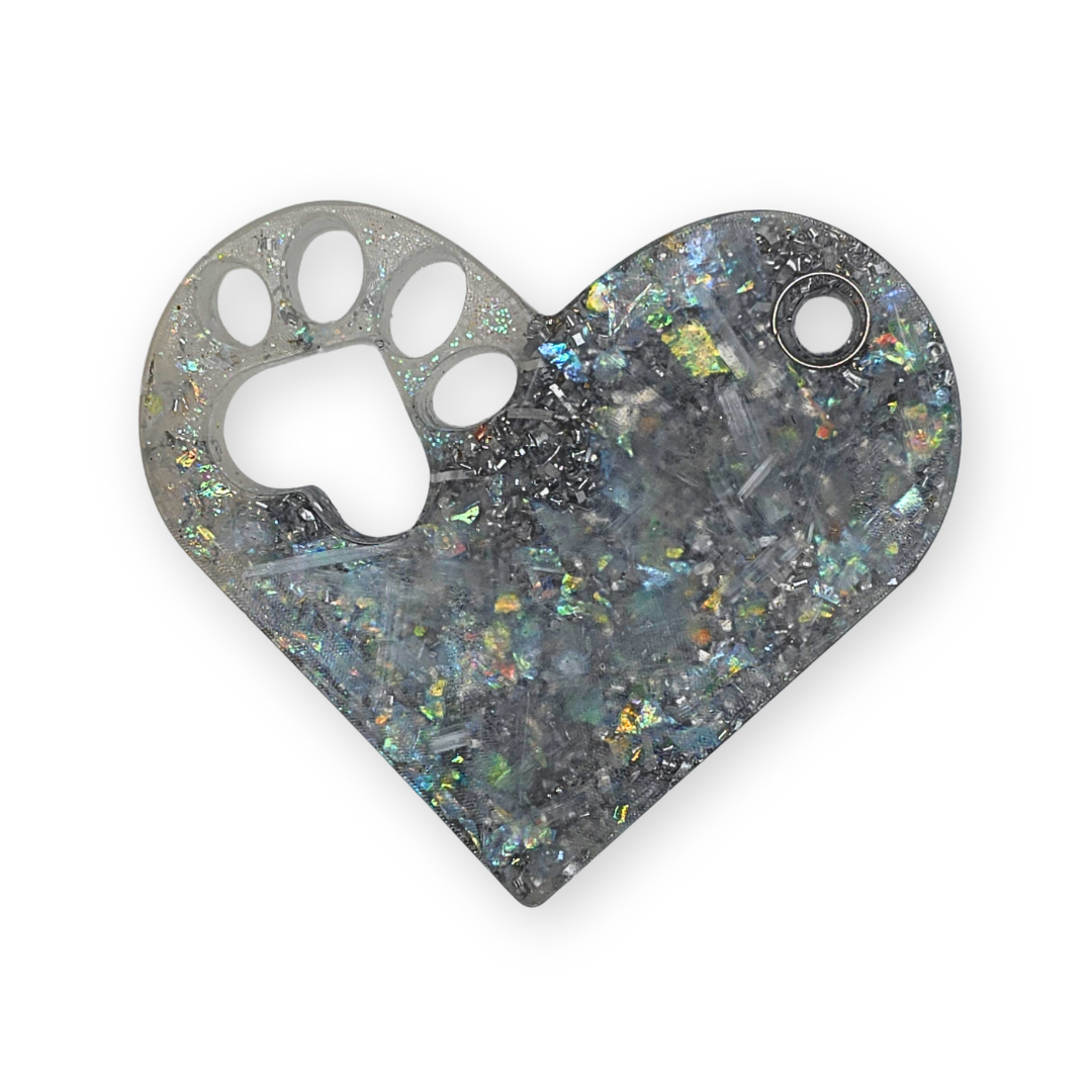 Mooi hart met hondenpoot orgonite met seleniet en aluminium.