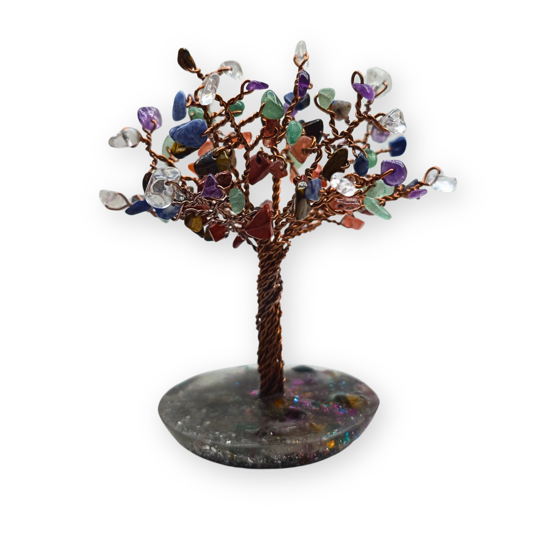 Mooie koperkleurige levensboom met chakra edelstenen.