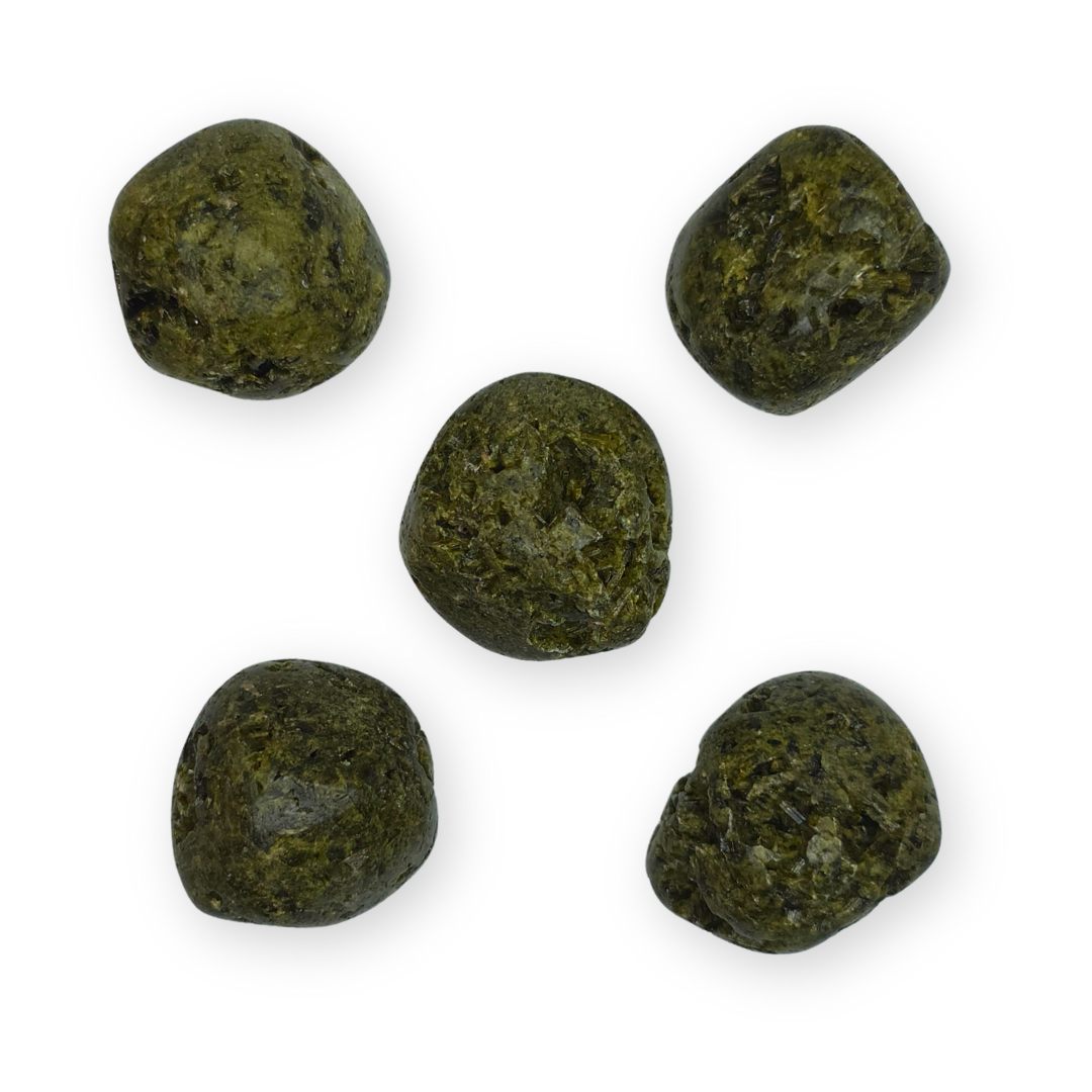 Mooi geslepen trommelsteen edelsteen van Epidoot.